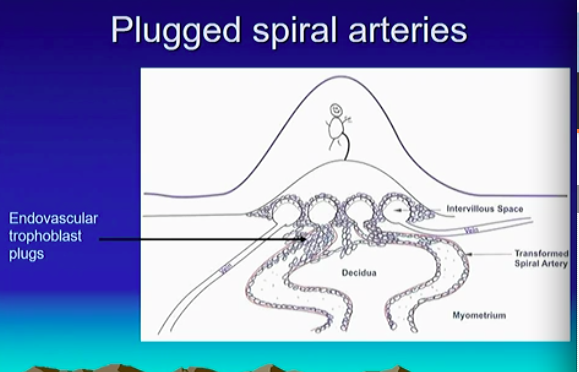 Why do you have ‘plugged spiral arteries’ prior to mid gestation?