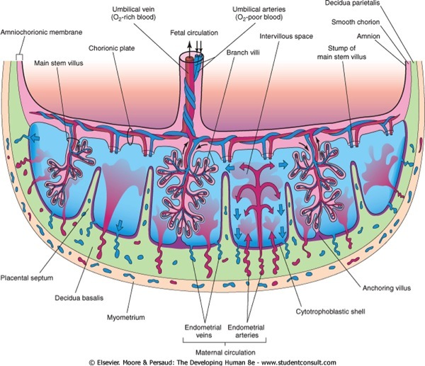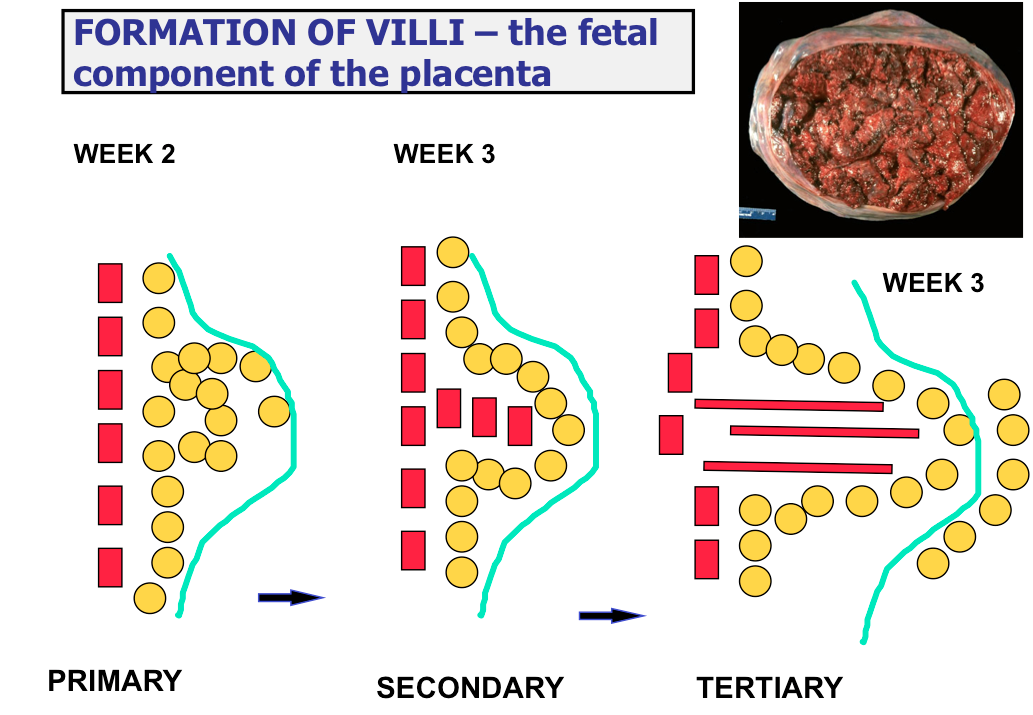 TERTIARY VILLI, INTERVILLOUS SPACE, DECIDUA BASALIS ARE THE BUSINESS END OF THE PLACENTA