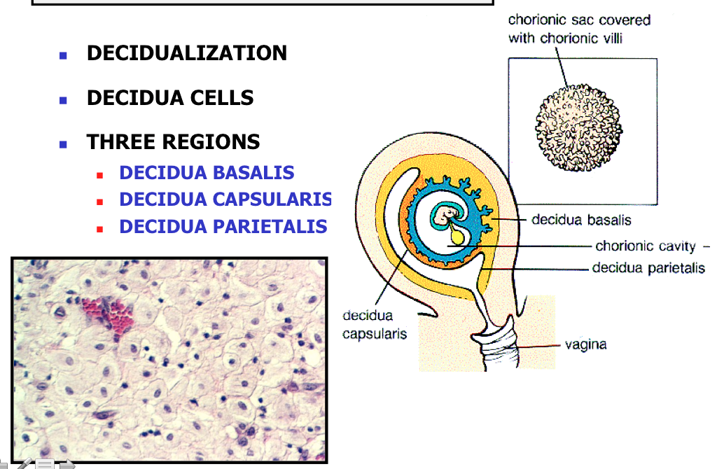 EXPLAIN THE REGIONS OF THE DECIDUA