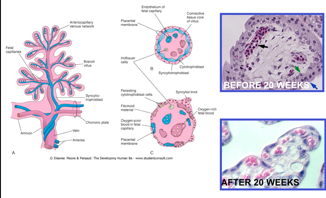 GO OVER CHANGES IN STRUCTURE OF PLACENTAL MEMBRANE