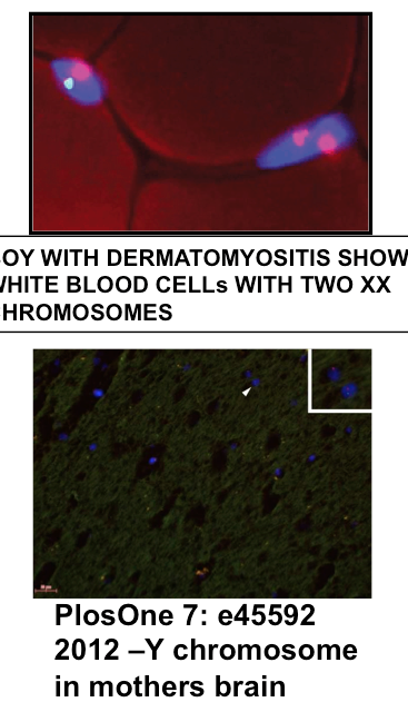 Mothers brains had part of Y chromosome – did qPCR on autopsied brains found Y chromosome gene in 63% of females