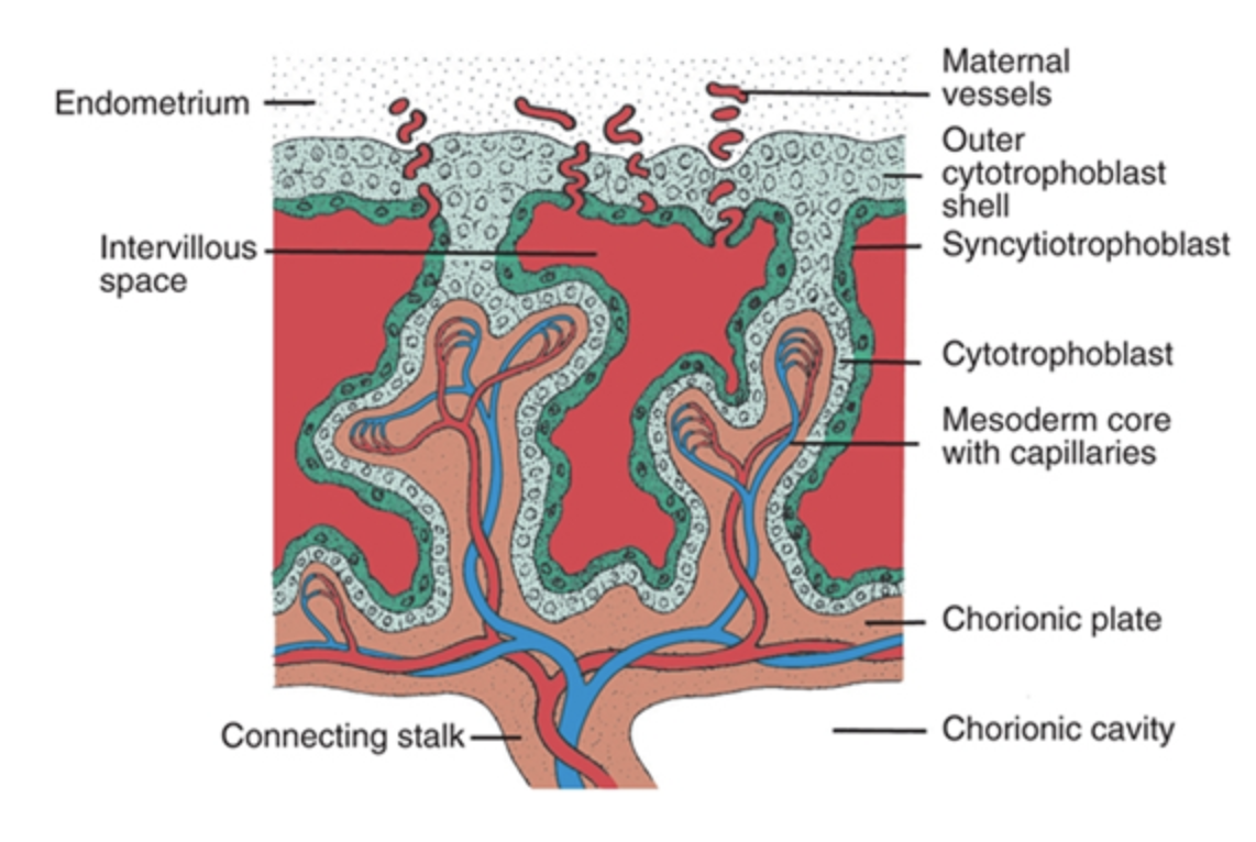 Initially (by month 4), the outer surface of the ____ ___form a placental membrane that consists of 4 layers: