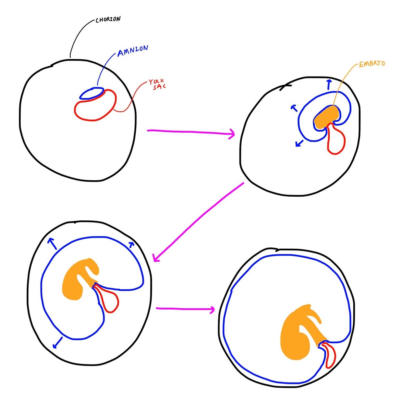 What is the process of development of the amnion?
