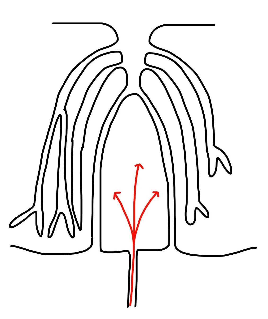 ‘Inverted wine glass’ lobular chorionic villi each with a maternal spiral artery opening into the centre.