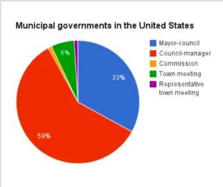 Council-Manager - most popular local govt; city council oversees everything, general admin, sets budget, policies, and appoints manager to carry out day-to-day admin.;