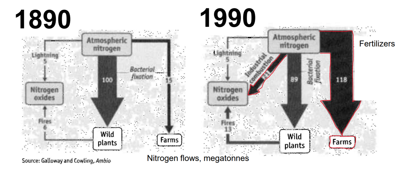 Human processes now convert more nitrogen from the atmosphere than all natural processes combined
