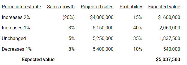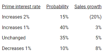 A company has determined that its sales to residential home builders tend to vary with changes in the prime interest rate. Sales this year will be $5 million. The following information is available: