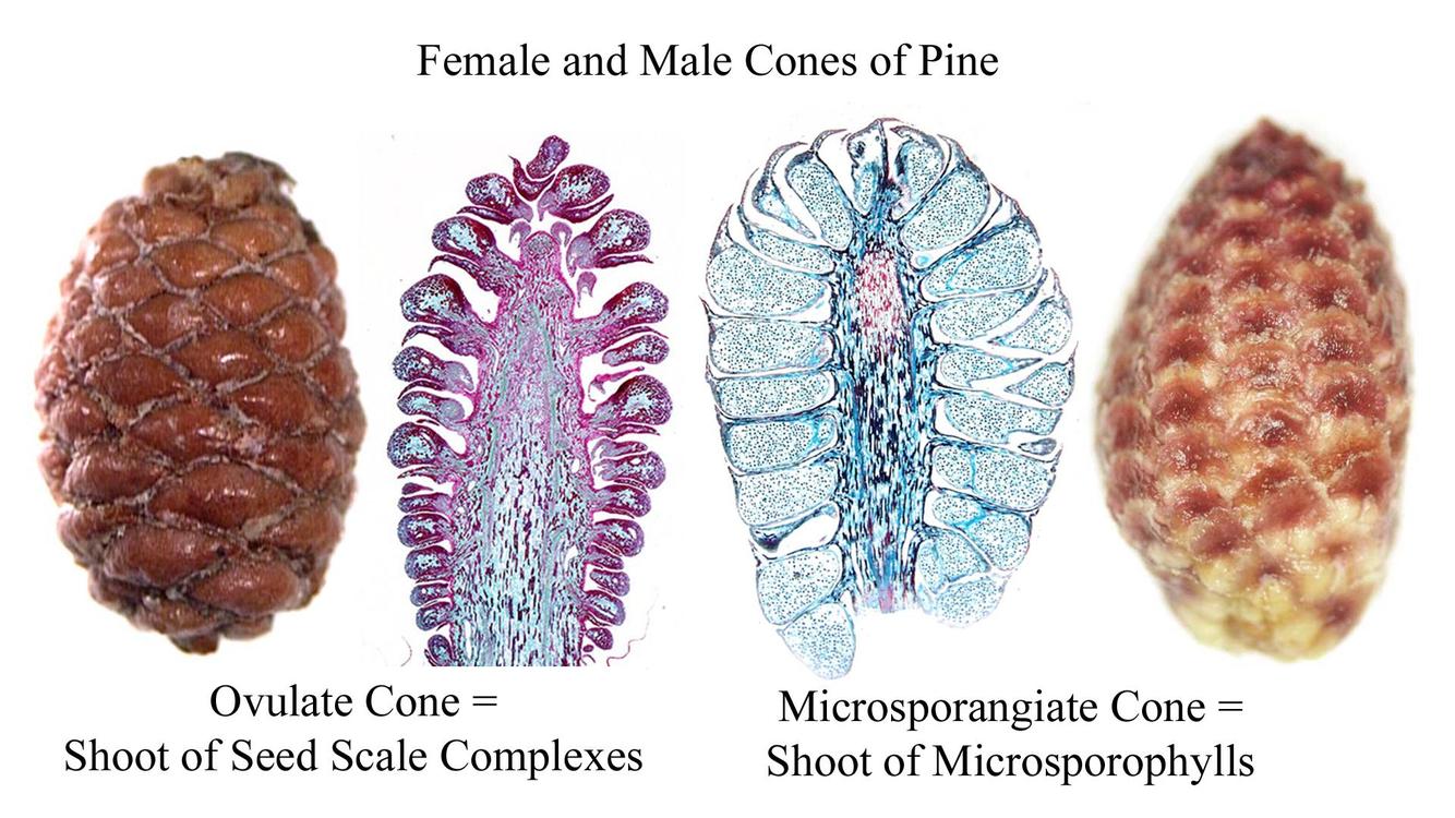 Male vs female cones from pine tree