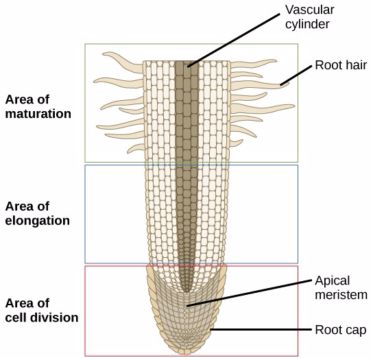 Parts of an onion root tip