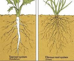Differentiate between taproot and fibrous root