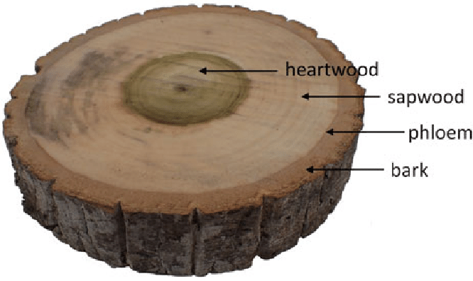 (Be able to label: bark, annual rings, heartwood, sapwood)