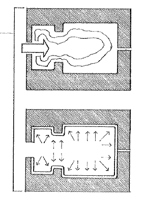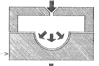 A method of forming hollow ware by injecting air under pressure into a molten mass, as that of a thermoplastic or glass, and shaping the material within a mold.