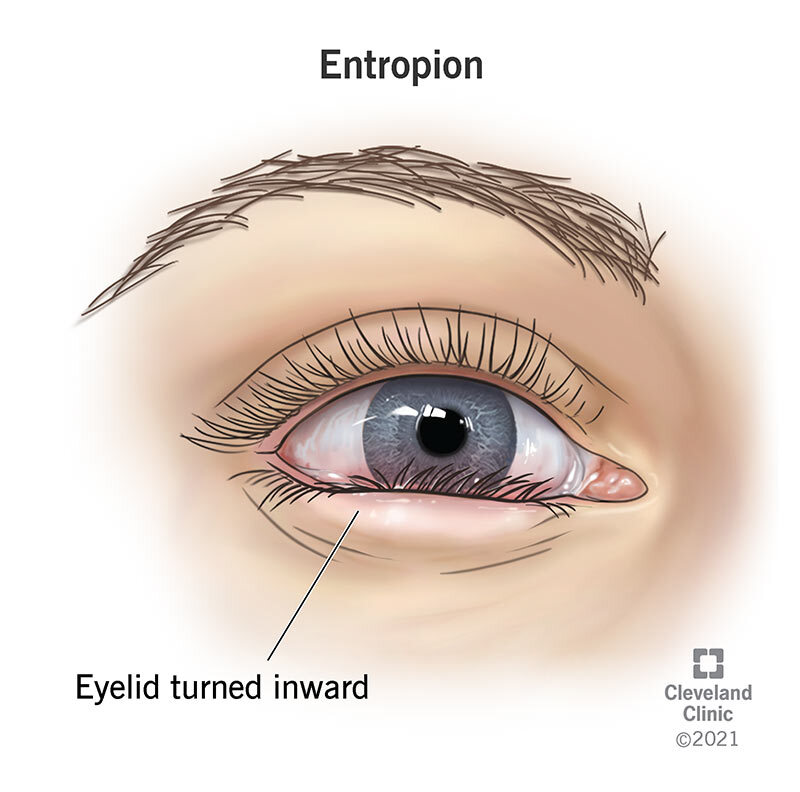 Entrópio é a versão para dentro da margem e apêndices palpebrais, de modo que a unidade pilosebácea e a junção mucocutânea esto direcionadas posteriormente em direção à córnea e superfície ocular.