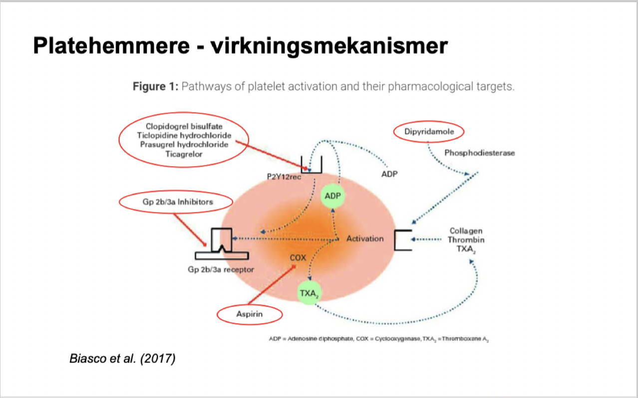 - Bl.a. å hemme siste fase av blodplateaggregasjonen er de mer potente platehemmere enn ASA og klopidogrel, som virker i initialfasen.