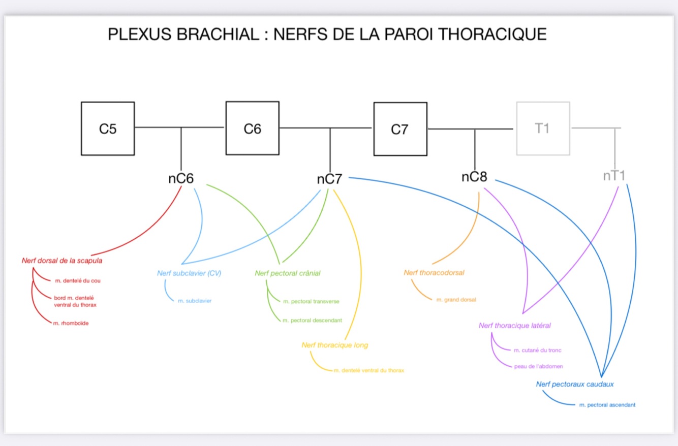 Plexus brachial, paroi thoracique: quels sont les nerfs d’origine impliqués dans les nerfs de la région scap?