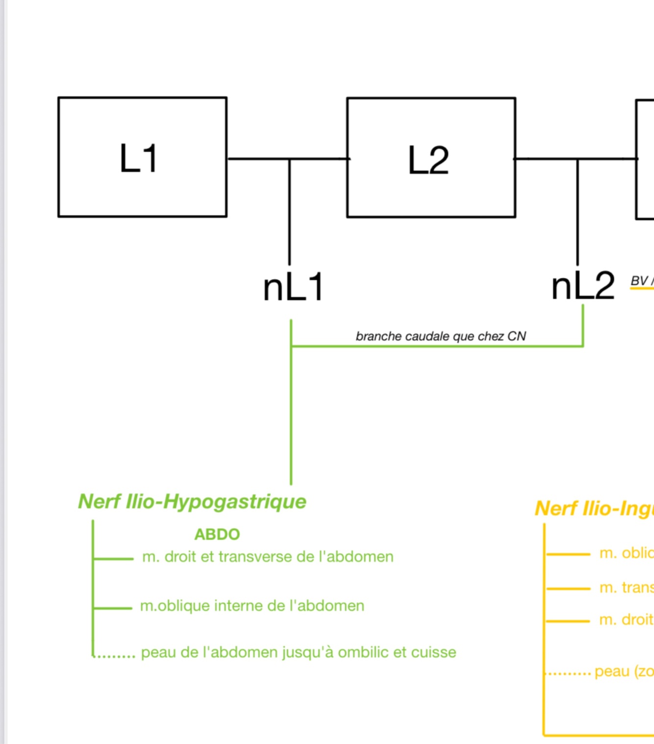 Nerf ilio, inguinal (nL2 cv bv nL3 cn)