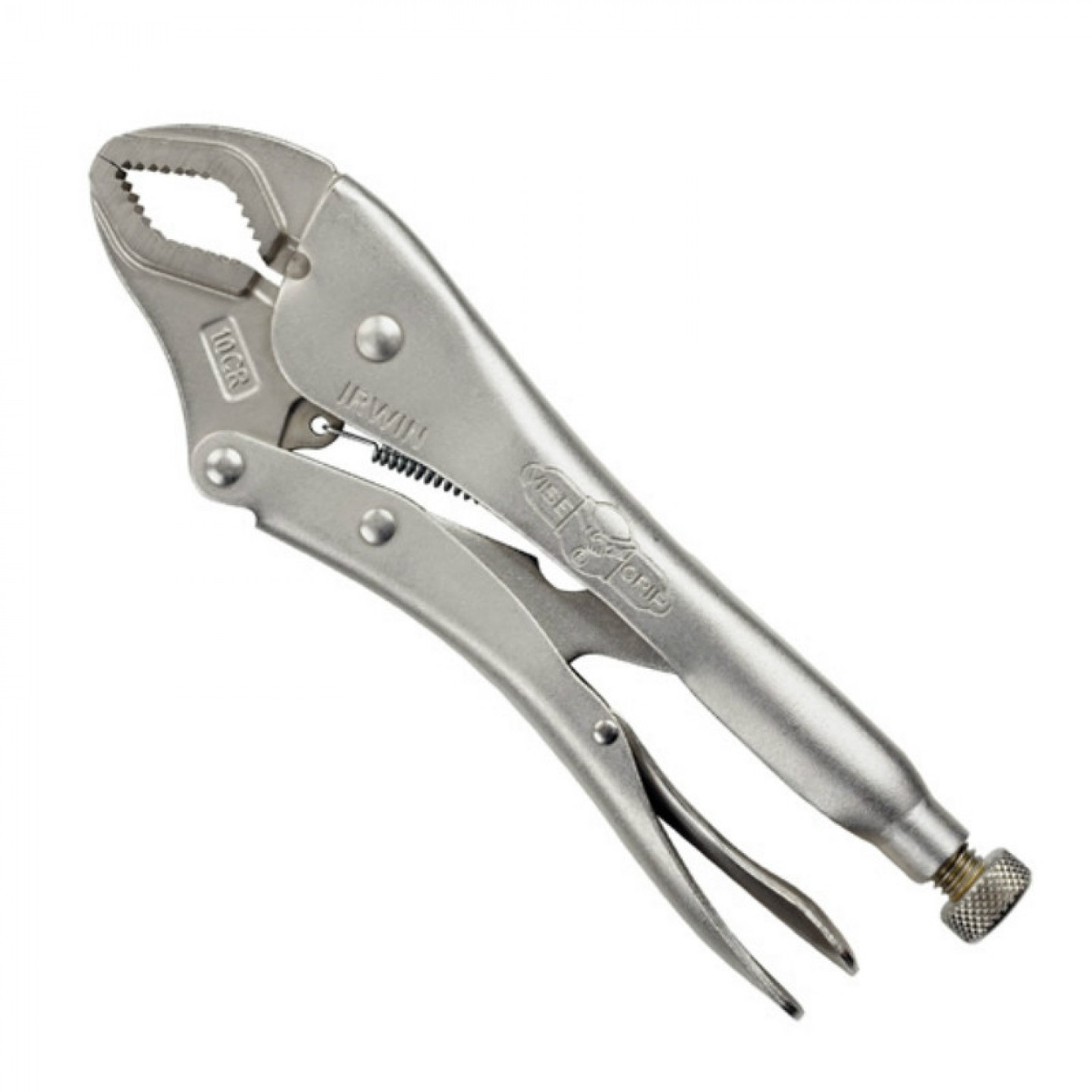 A type of adjustable pliers with a toothed groove along the upper handle allowing the lower jaw to be locked into a number of positions. - The angled jaws make it easier to turn nuts and bolts