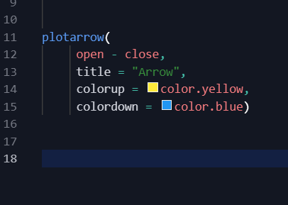 Explanation: The colorup and colordown arguments in the plotarrow function are used to specify the colors of the arrow for upward and downward movements, respectively.