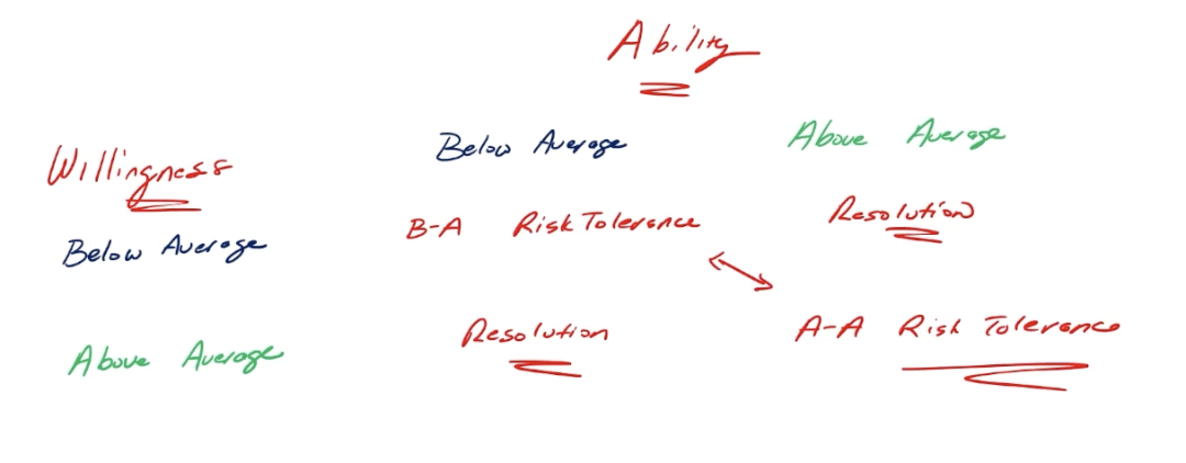 86.1 Describe the chart or ability / willingness to take risk (and what the below and above average realisations of these characteristics mean)