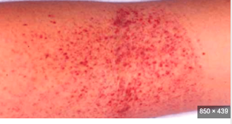 - inflating a blood pressure cuff to midway between systolic and diastolic for 5 minutes. You then look to see if there are ten or more petechiae per inch squared. If there are, it is a positive test and dengue is suspected