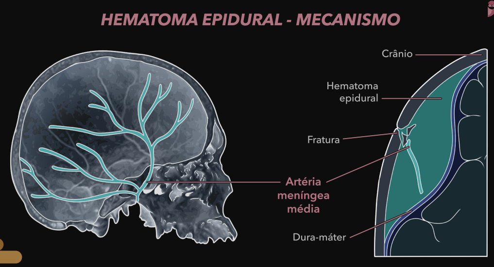 Ocorre frequentemente devido à fratura que lesiona a artéria meníngea média (localizada entre o crânio e a dura-máter).