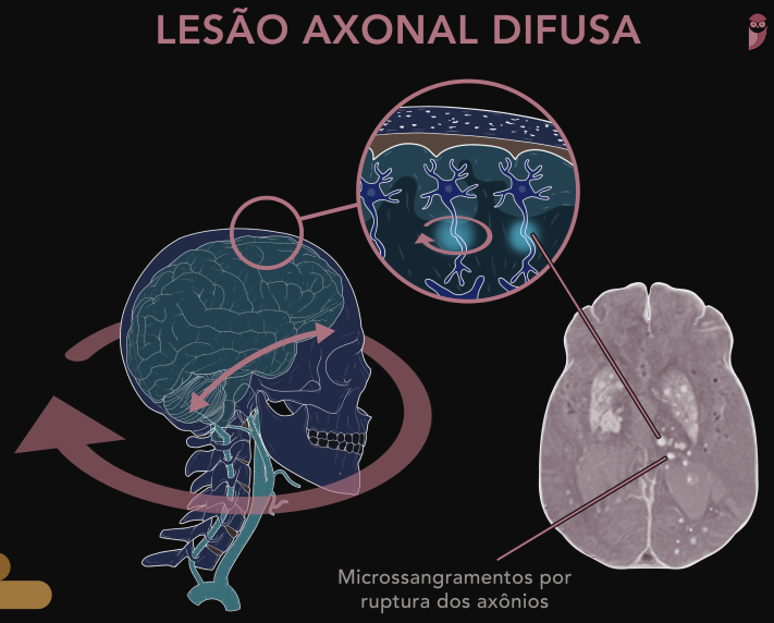 Lesão Axonal Difusa (microssangramentos por ruptura dos axônios).