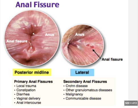 More than 90% of anal fissures are located in the posterior midline of the anal canal. There is evidence that circulation here is poor and anal spasms further reduce blood supply.