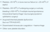 Platelet thresholds for transfusion are higher (maximum < 100 x 10 9) for patients with severe bleeding (World Health organisation bleeding grades 3&4), or bleeding at critical sites, such as the CNS.
