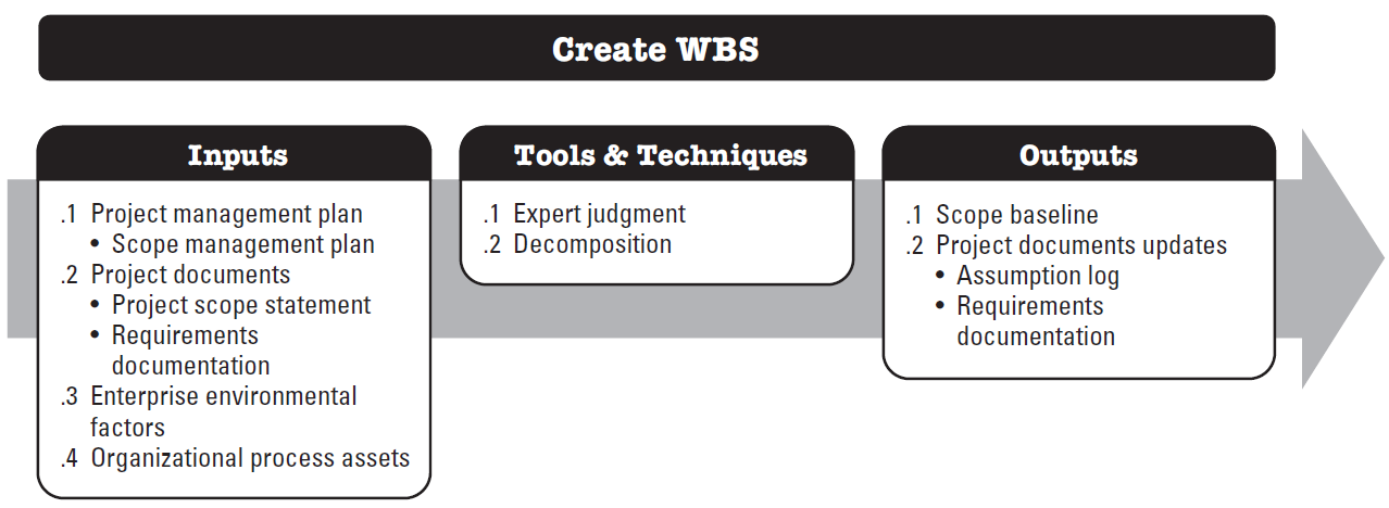 Create WBS is the process of subdividing project deliverables and project work into smaller, more manageable components. The key benefit of this process is that it provides a framework for what is to be delivered.