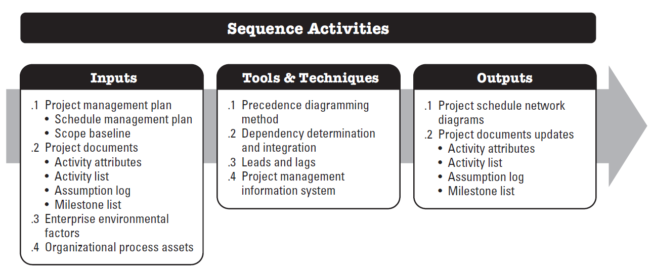 Sequence Activities is the process of identifying and documenting relationships among the project activities. The key benefit of this process is that it defines the logical sequence of work to obtain the greatest efficiency given all project constraints.