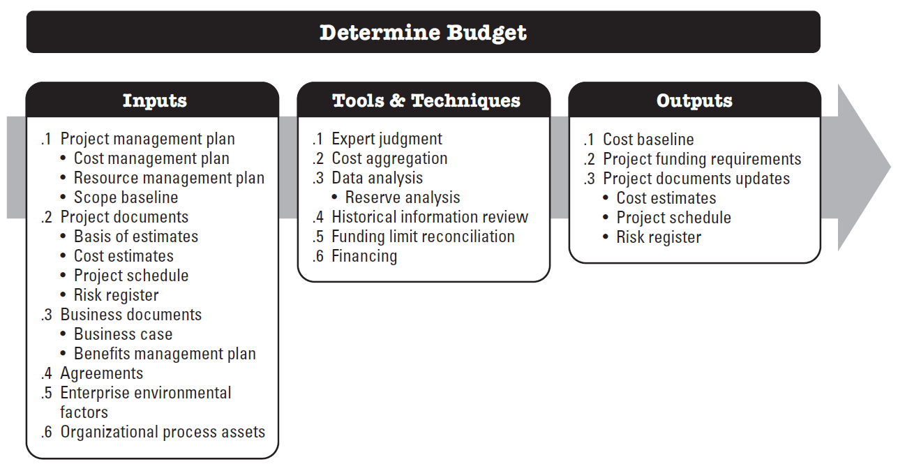 Determine Budget is the process of aggregating the estimated costs of individual activities or work packages to establish an authorized cost baseline. The key benefit of this process is that it determines the cost baseline against which project performance can be monitored and controlled.