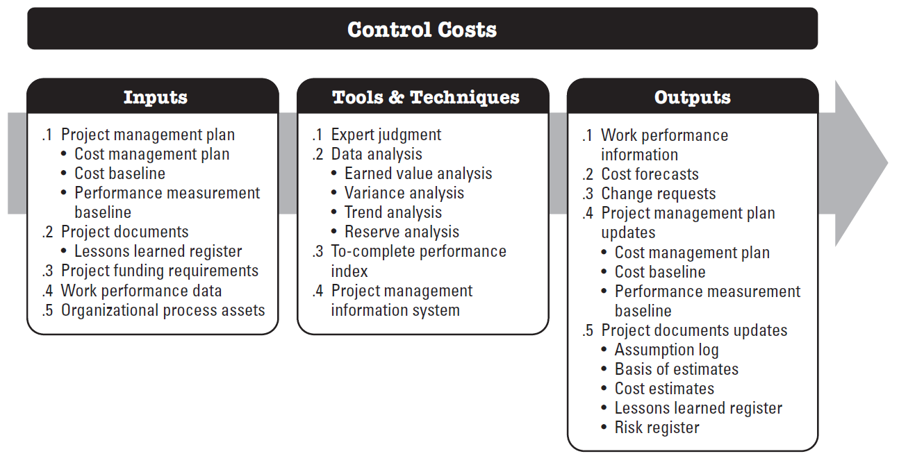 Control Costs is the process of monitoring the status of the project to update the project costs and managing changes to the cost baseline. The key benefit of this process is that the cost baseline is maintained throughout the project.