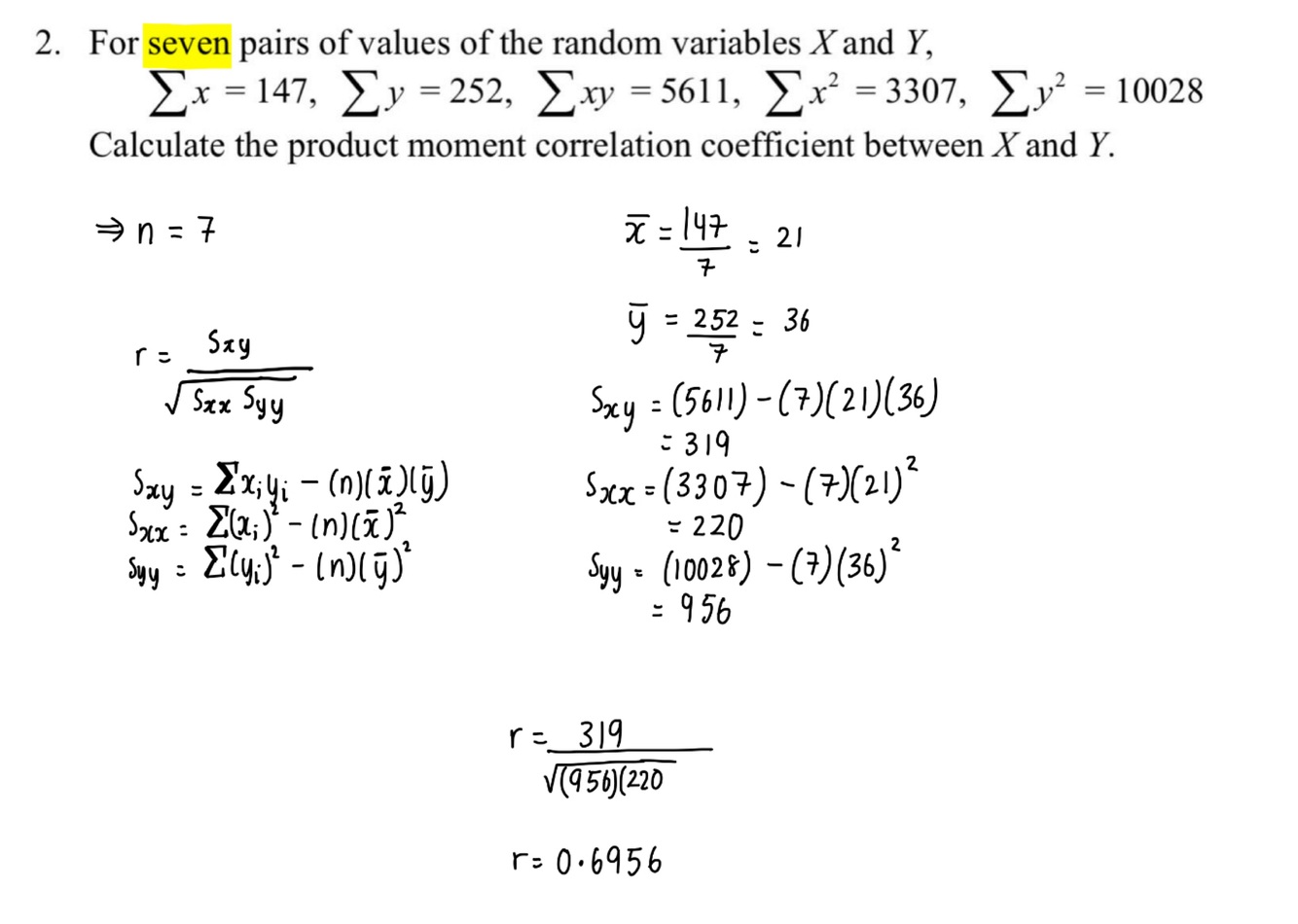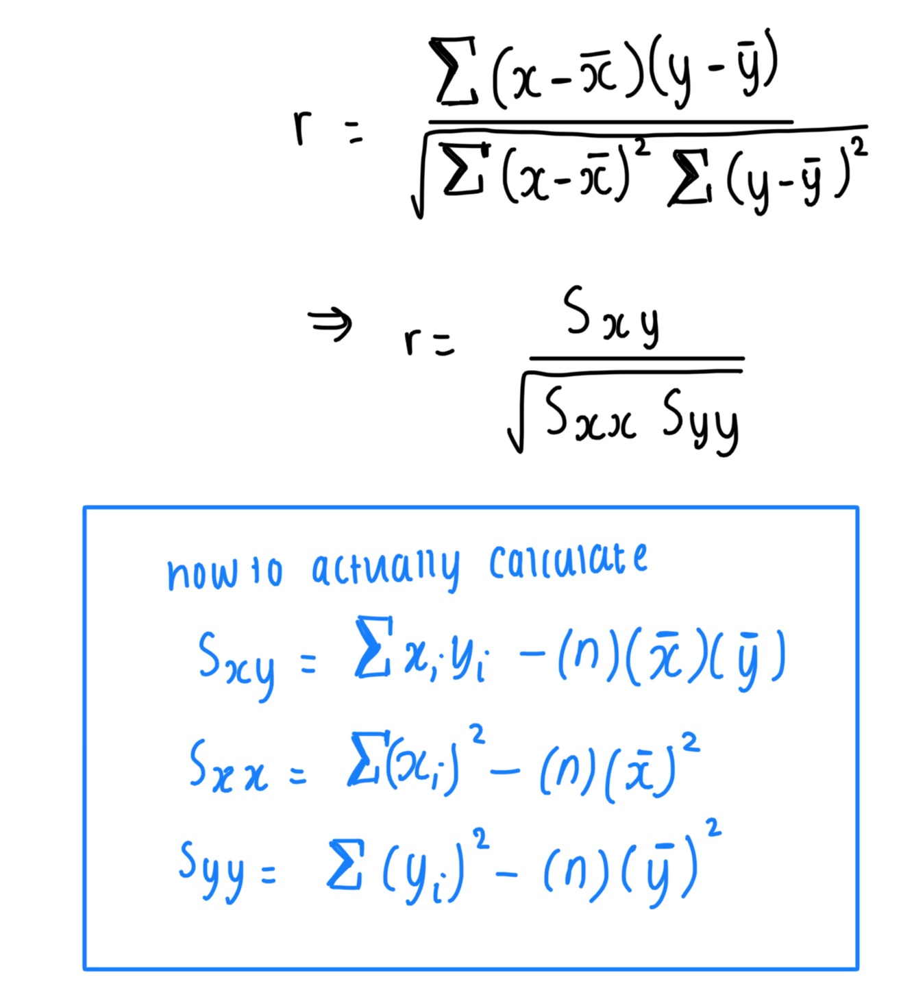 What is the formula for the product moment correlation coefficient?