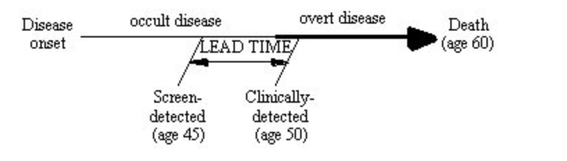 overestimation of the survival of patients diagnosed with a screen-detected condition. Earlier detection of conditions gives appearance of longer survival