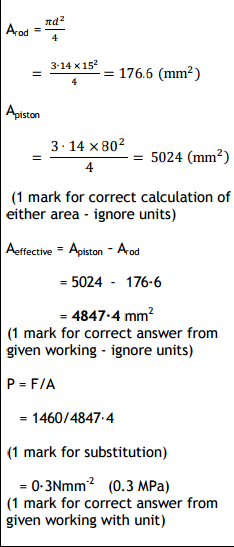 Calculate the air pressure required to produce an instroking force of 1460 N. Show all working and final unit. Worth 4 Marks