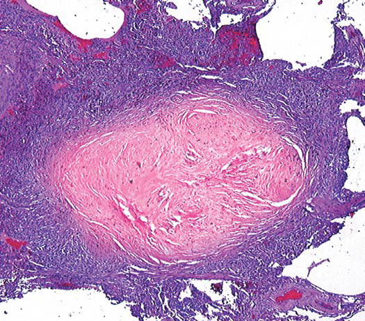 A patient reported that he suddenly became short of breath and started coughing. A lung biopsy was performed and is shown below. Shown is a concaseating granuloma. Sarcoidosis and tuberculosis are ruled out. What is your suspected Dx? What test would help confirm this Dx?