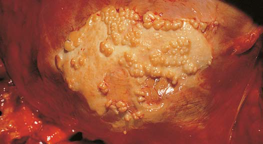 The dome of the diaphragm is shown below with a smooth, pearly white, nodular plaque. The patient had significant exposure to asbestos. What is shown below?