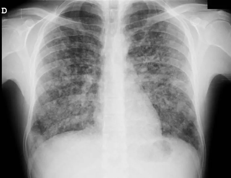 Homem de 28 anos de idade com queixa há 10 dias de mal-estar, mialgia, dor de garganta, tosse seca, febre (39ºC), raio-x mostrando grande infiltrado pulmonar, hemograma sem alterações. Qual o provável diagnóstico?