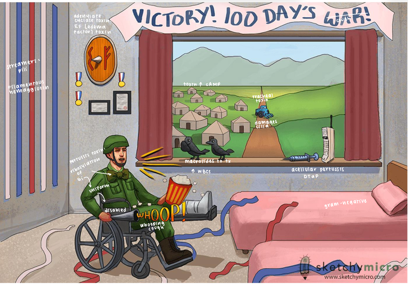 Bordetella pertussis spreads by respiratory droplets which are very infectious due to pili called filamentous hemagglutinin