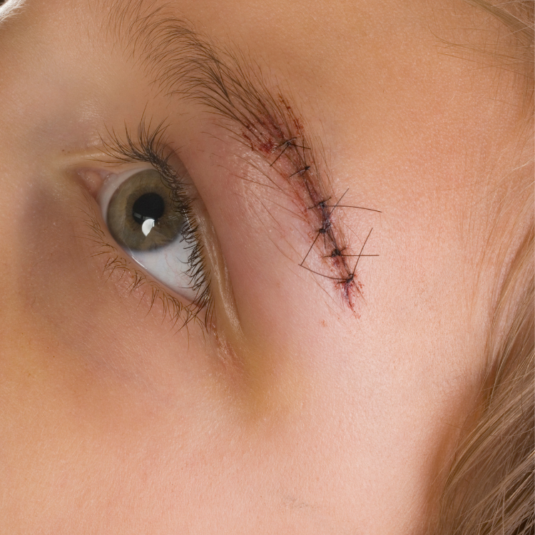 -Incision refermée avec des pt de sutures et pansement occlusif appliqué