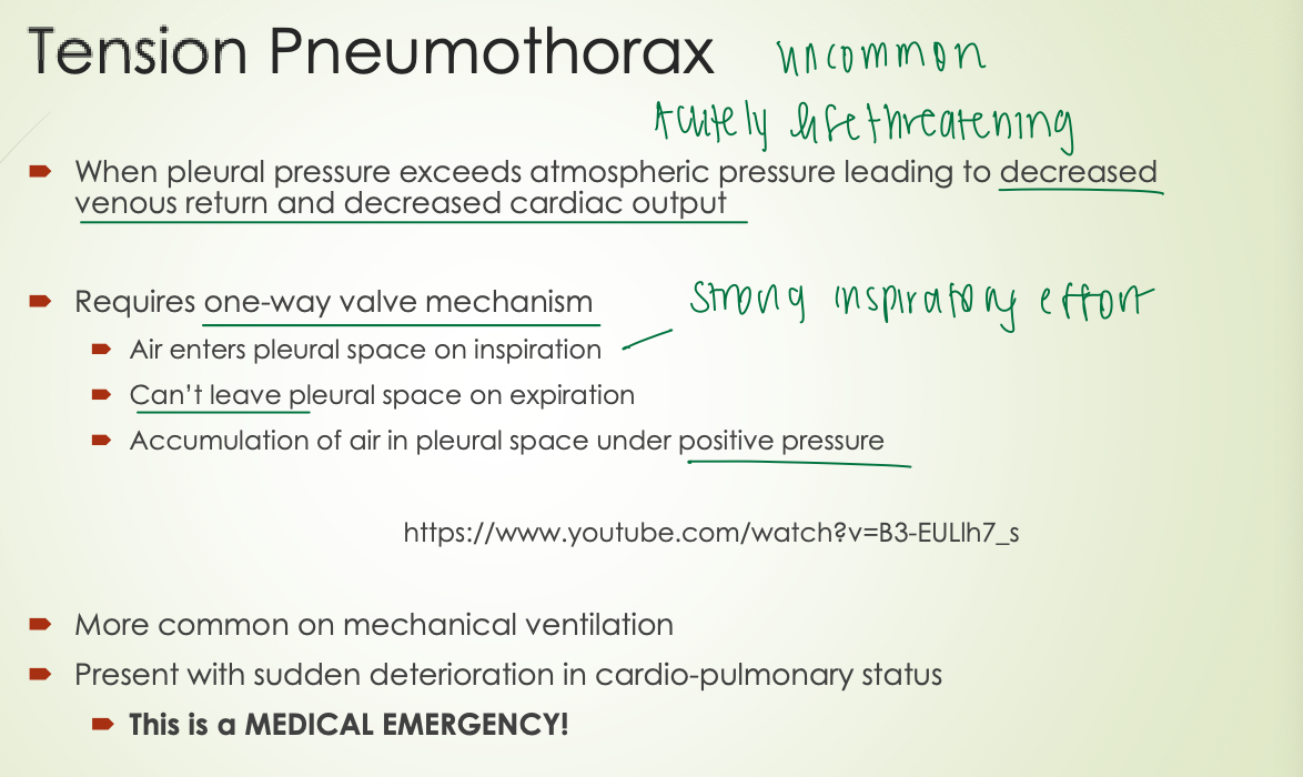-Pneumothorax that occurs in someone with underlying lung disease: eg. COPD, IPF