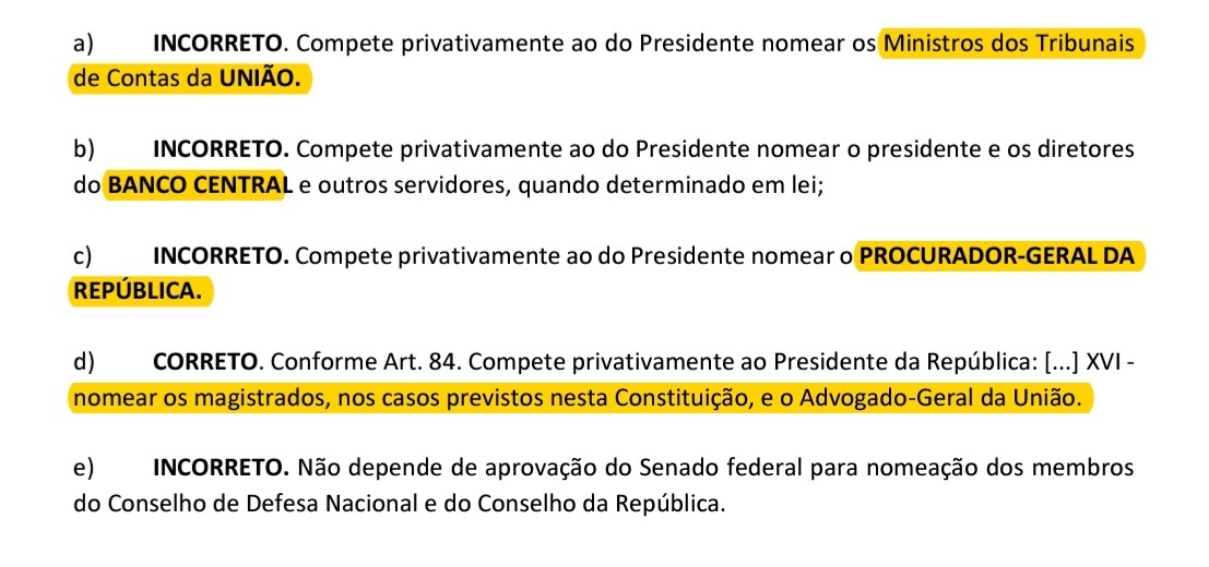 • Titulares Dos Órgãos subordinados pelo PR (Se liga, não é qualquer pessoa subordinada)