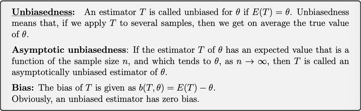 Describe unbiasedness as a property when measuring the effectiveness of an estimator