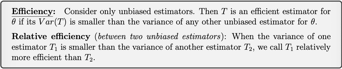 Describe efficiency as a property when measuring the effectiveness of an estimator