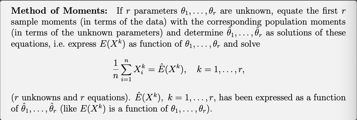 Describe the Method of moments estimators (MME) method of estimation
