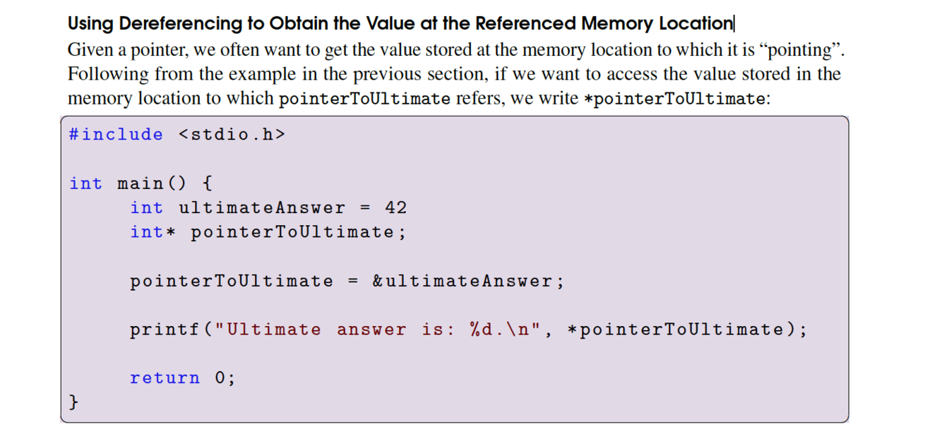 Using Dereferencing to Obtain the Value at the Referenced Memory Location
