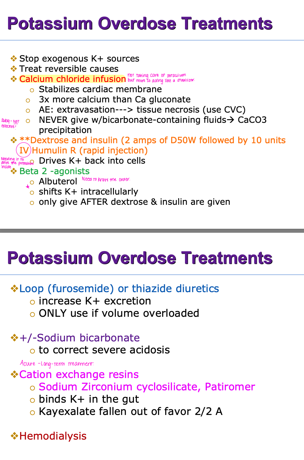 potassium overdose treatments
