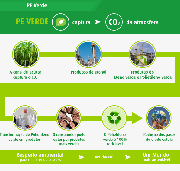 EX: POLIETILENO VEM DO PETRÓLEO. O POLIETILENO VERDE VEM DA CANA DE AÇÚCAR