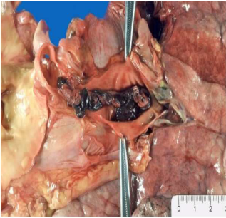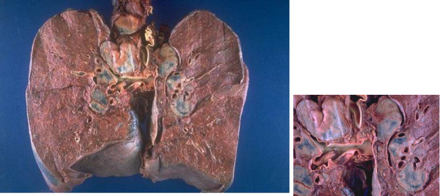 Descrizione: Bronco con tappo mucoso. Apertura del bronco, nella patologia polmonare quando si