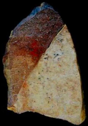 dell’ilo, il colore è rosso bruno scuro, è un problema che riguarda l’irrorazione. L’infarto del polmone